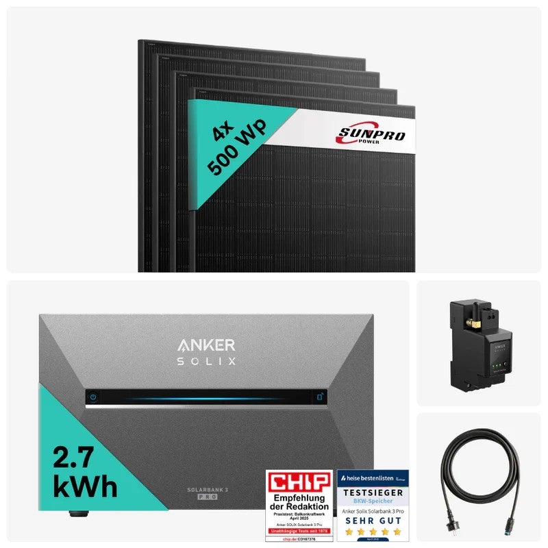 Solago Balkonkraftwerk mit Speicher 2000W - inkl. Anker SOLIX Solarbank 3 Pro